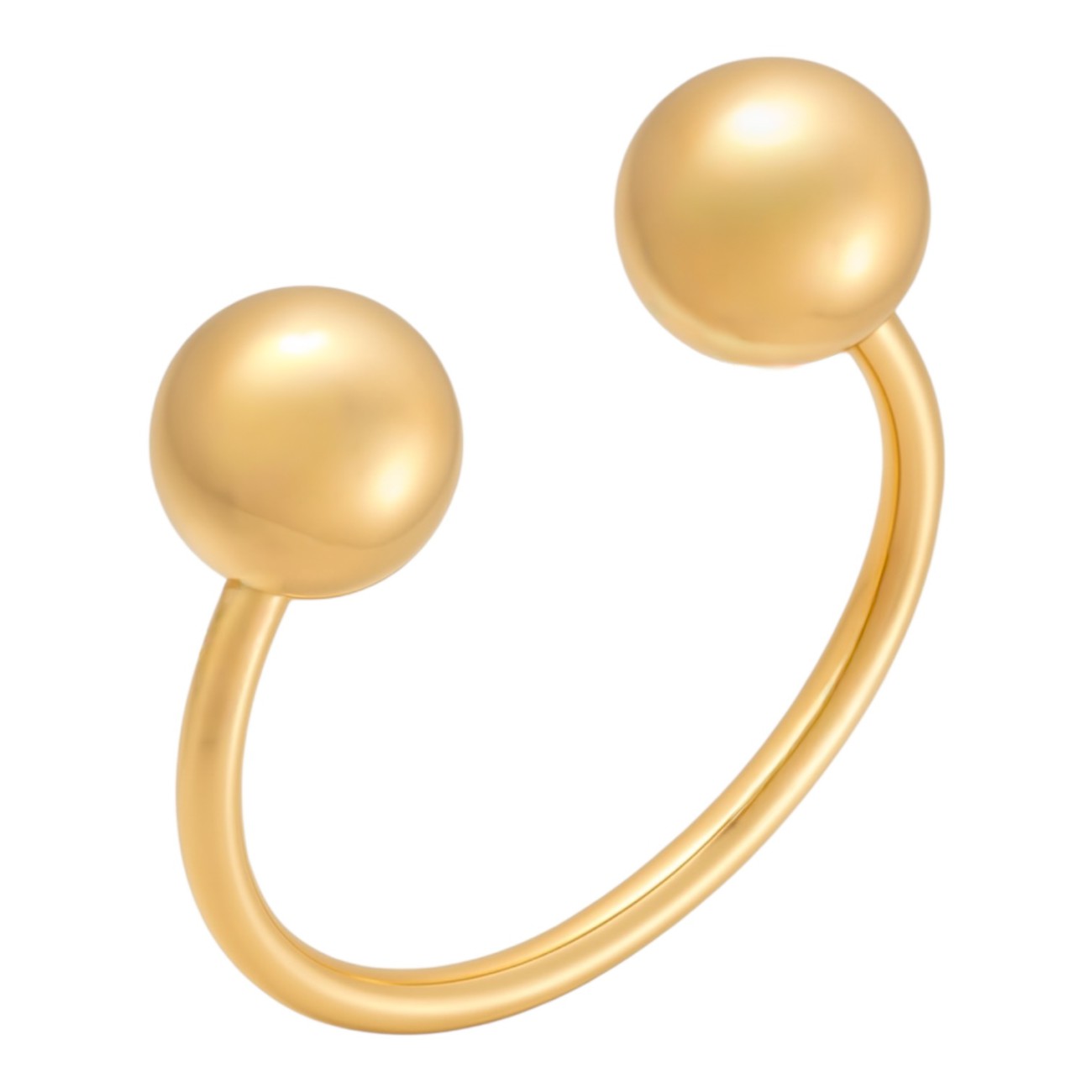 Лаконічна золота каблучка 585 проби — втілення мінімалізму та сучасної елегантності. Два невеликі золоті кульки по боках додають дизайну витонченого акценту, зберігаючи при цьому чистоту форми. Ідеальний варіант для тих, хто любить стриманий блиск без зайвих деталей. Гармонійно поєднується як з діловими, так і з повсякденними образами.