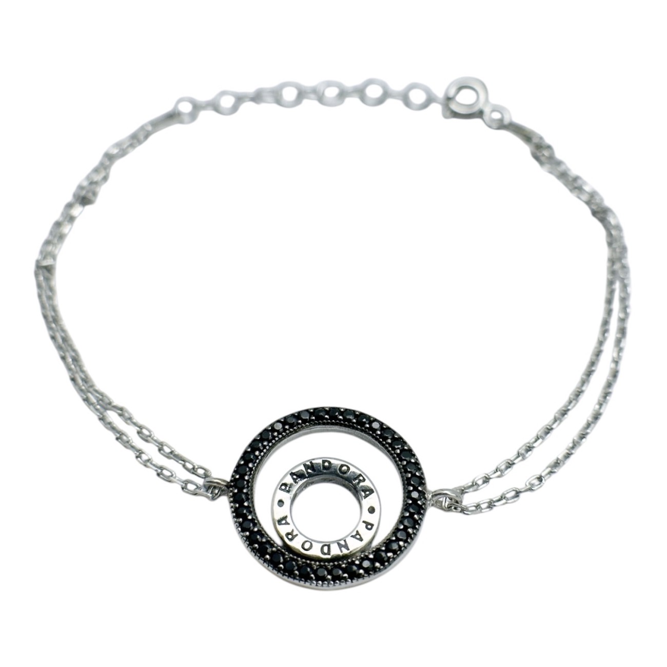Браслет в стилі "Пандора" з чорними фіанітами ,срібло 925 проби ,покрите родієм. Розмір регулюється 16-19 см.