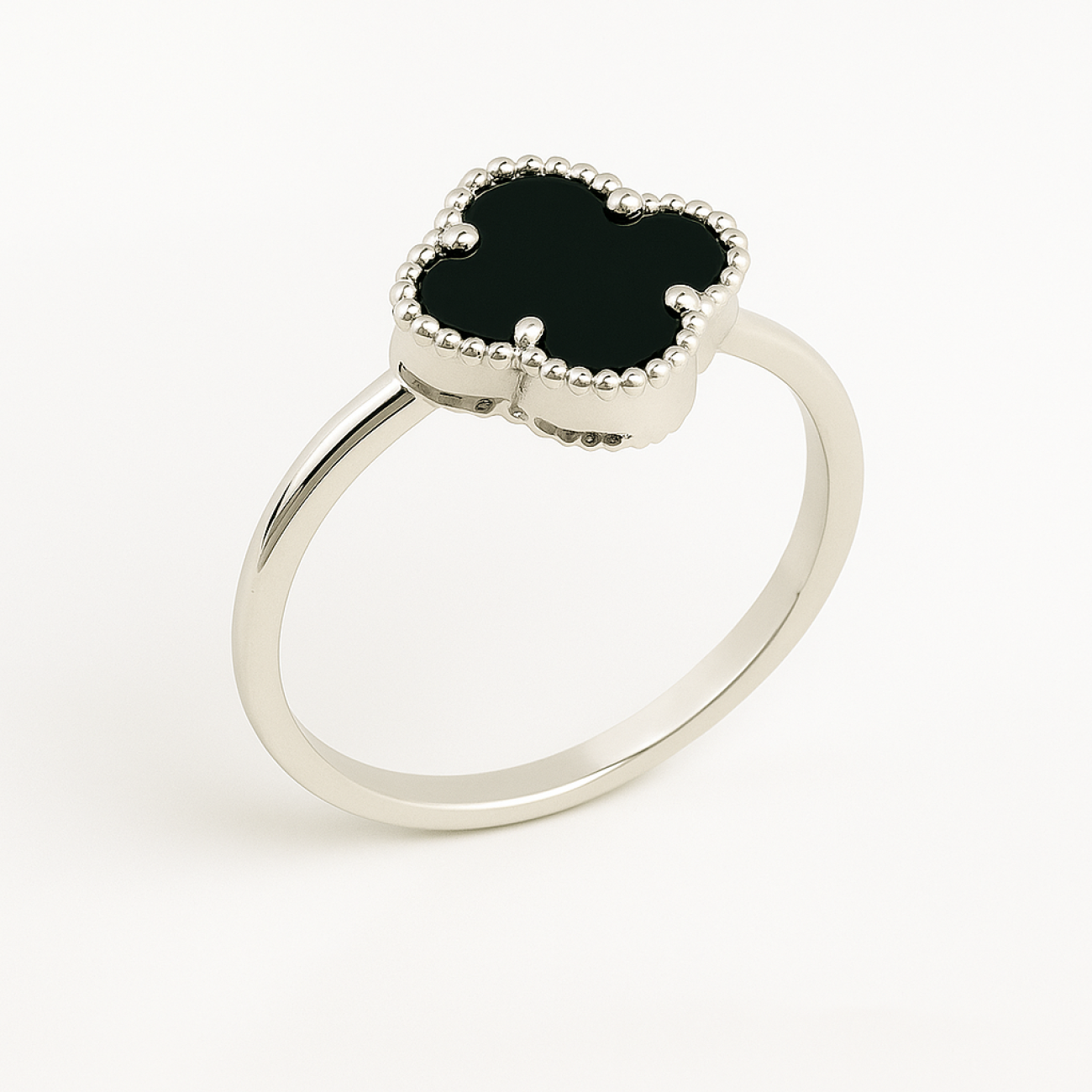 Відгуки про Срібна каблучка "Листок щастя" з вставками оніксу Артикул B11028 Розмір 17.5
