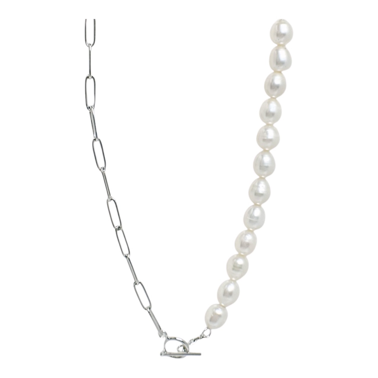 Відгуки про Срібне кольє з перлами та вставками фіанітів Розмір 45.0 Артикул A11099