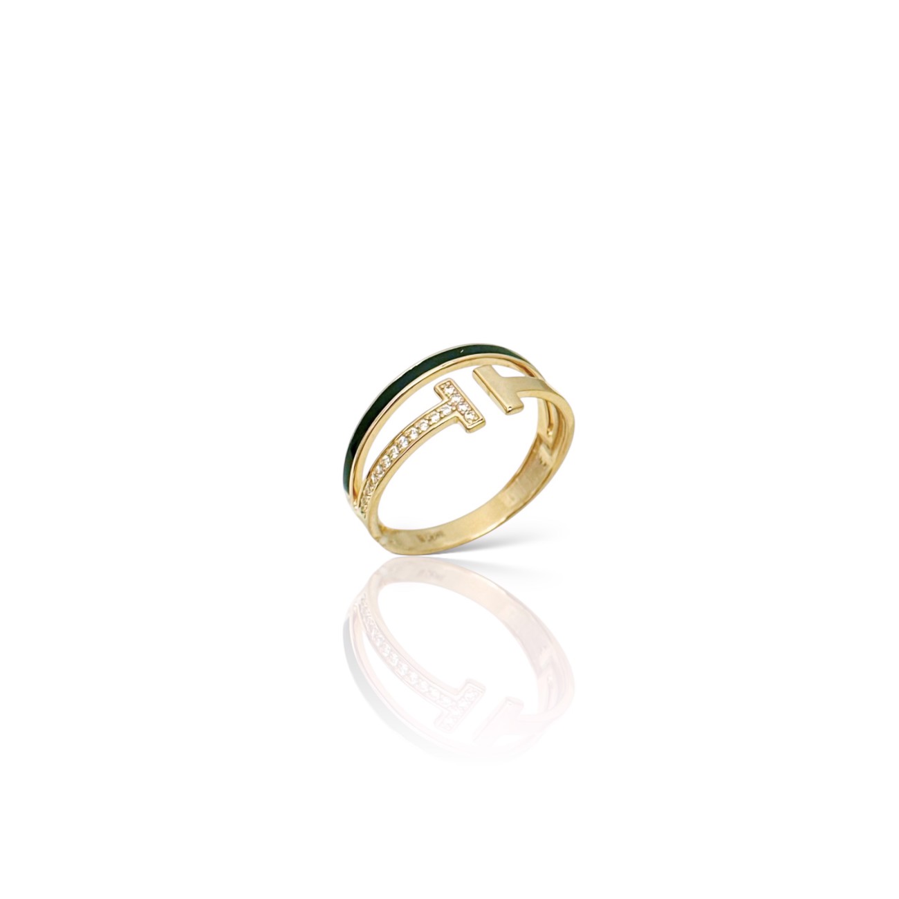 Відгуки про Золота каблучка з вставками цирконію та емалі Розмір 18,5 Артикул 1111828101