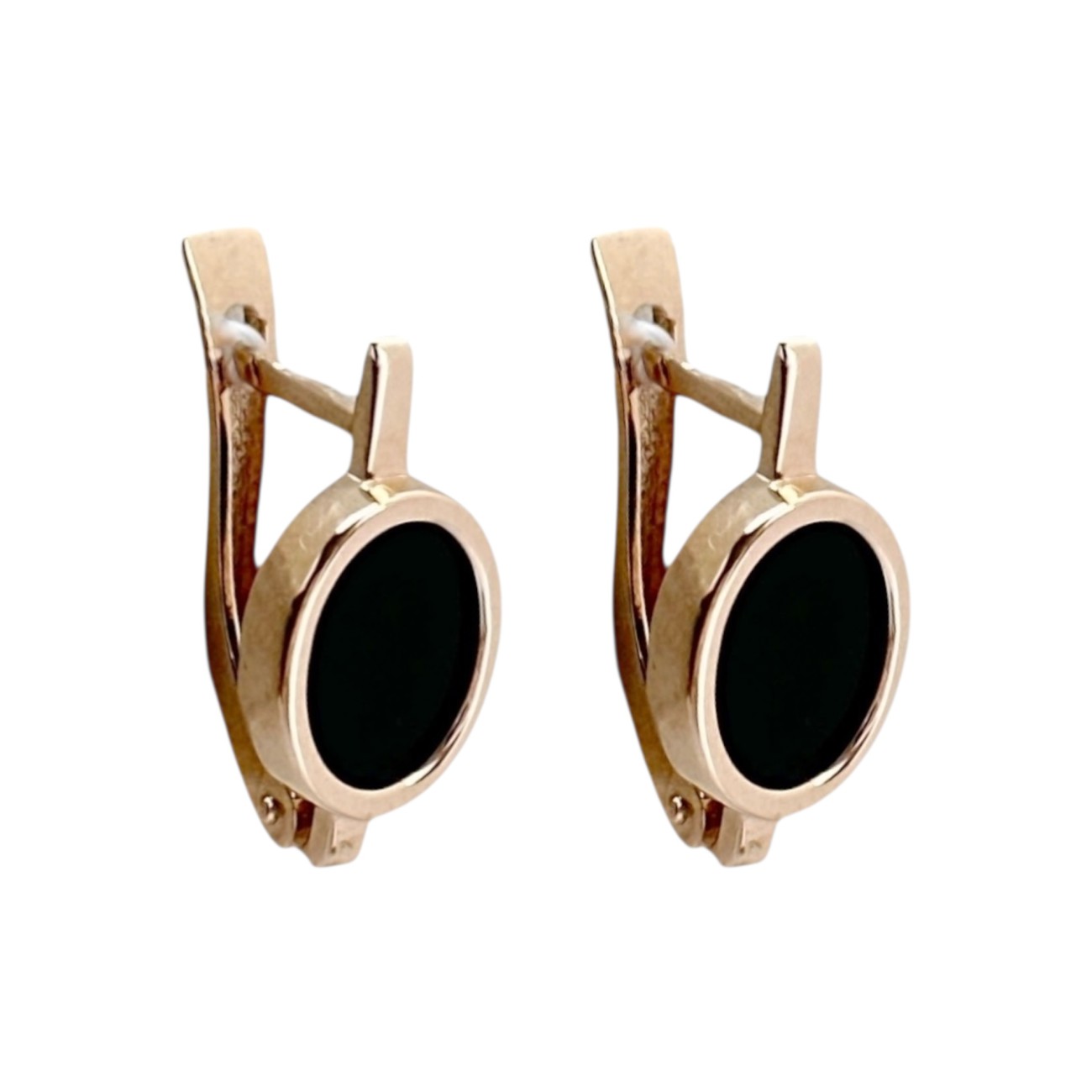 Опис Золоті сережки з вставками оніксу Артикул 2/1161/2