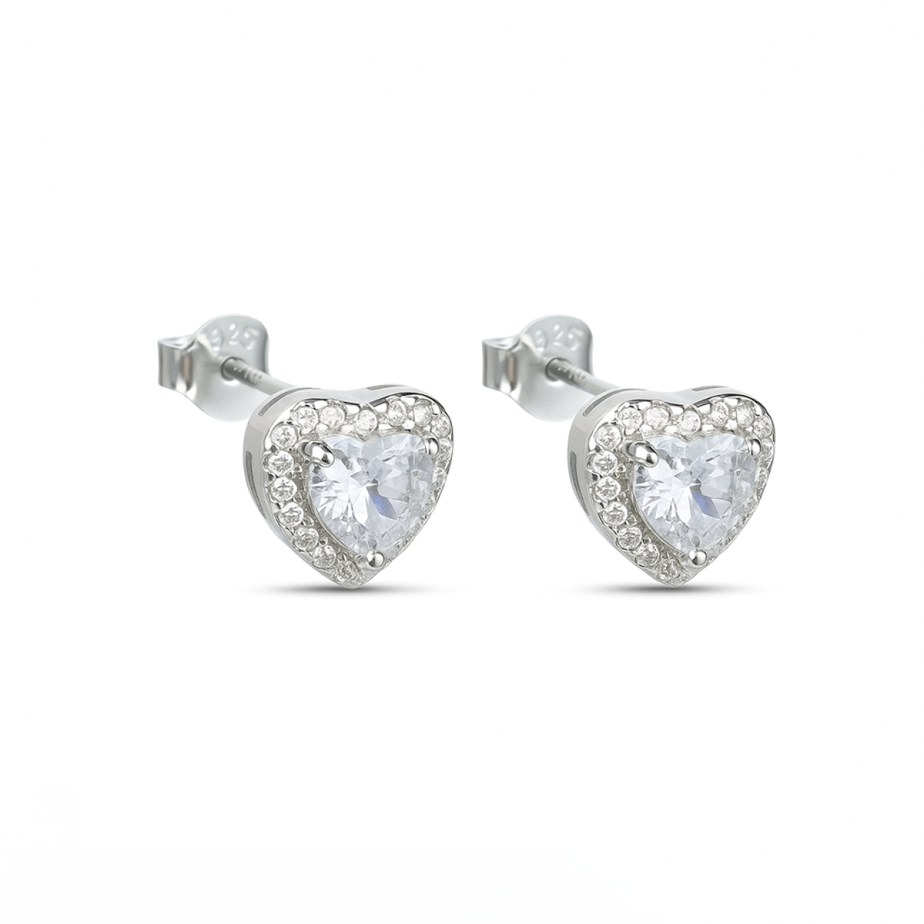 Опис Срібні сережки серце з фіанітами Артикул 521131б