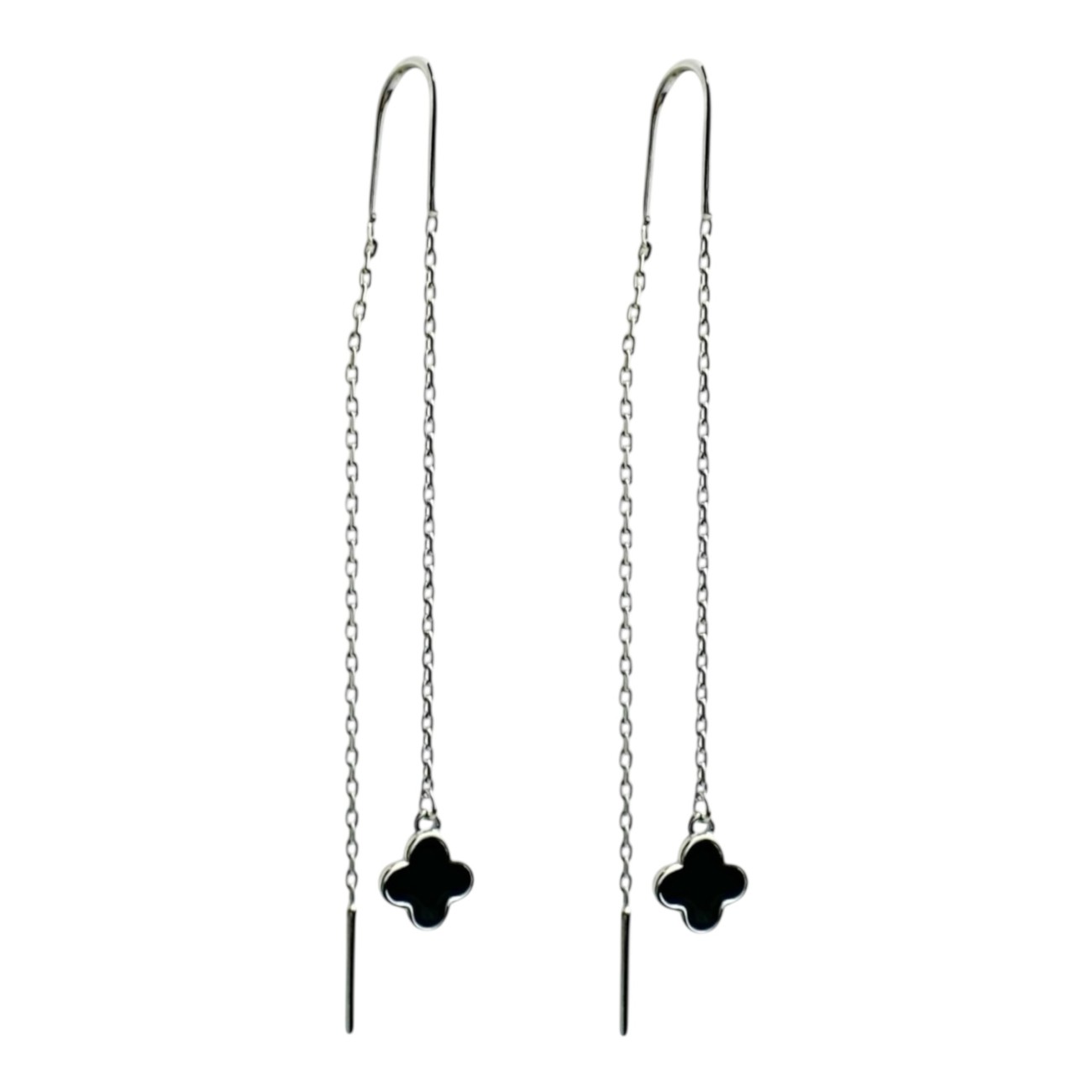 Вишукані срібні сережки-протяжки з чорною емаллю — стильне поєднання лаконічності та характеру. Контраст глибокого чорного відтінку та блиску полірованого срібла створює сучасний і виразний акцент у будь-якому образі.