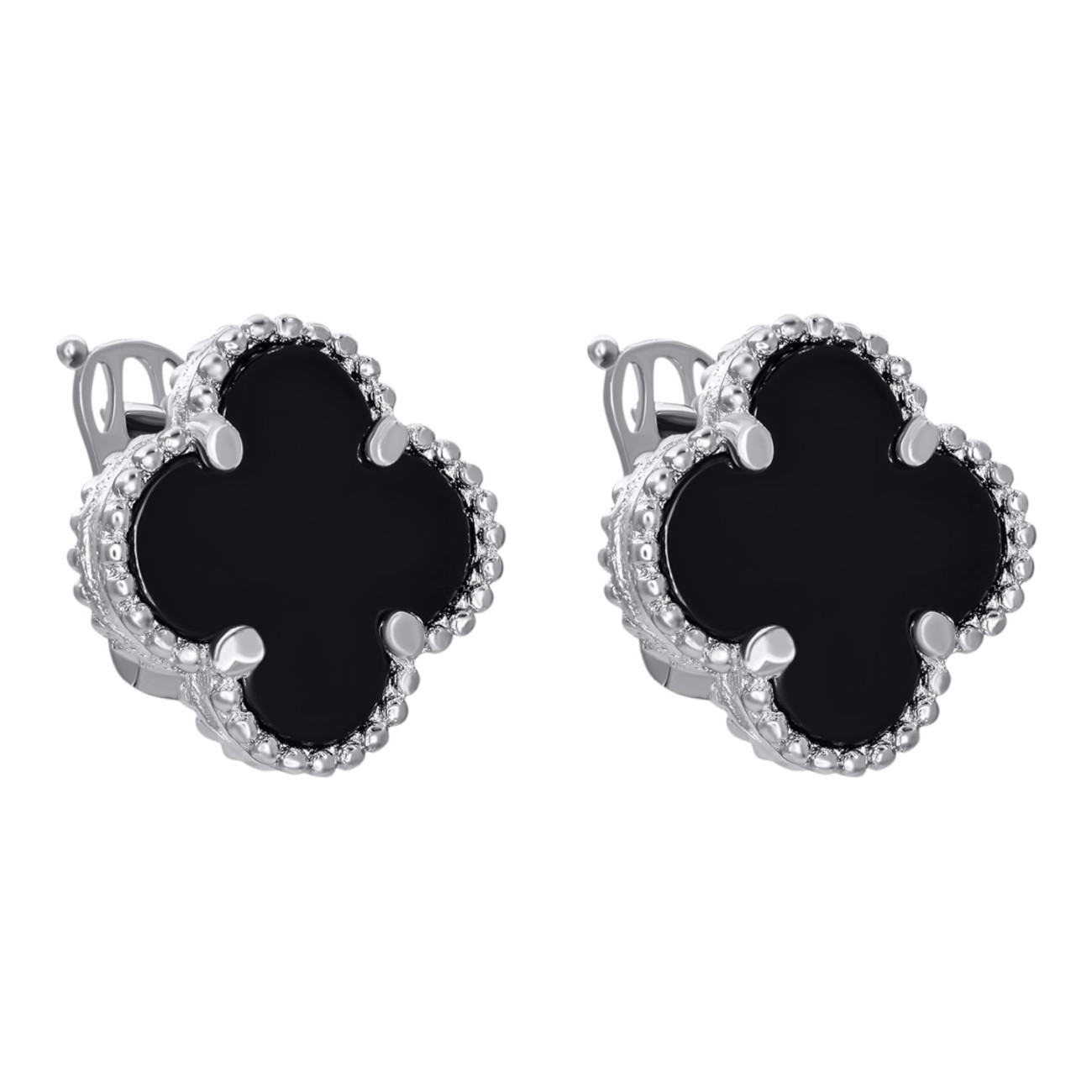 Основні характеристики Срібні сережки "Листок щастя" з оніксом . Артикул С-616 Rh