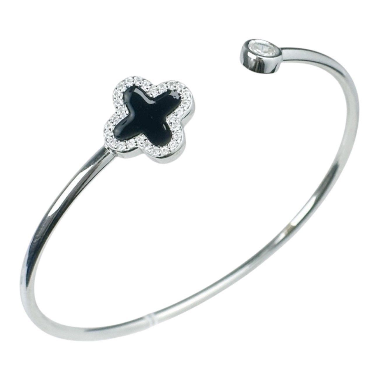 Срібний браслет "Листок щастя" з фіанітами Артикул 550298ч - це те, що Ви шукали! Доповніть свій образ красивим ювелірним виробом, або здивуйте таким аксесуаром дорогих вам людей.