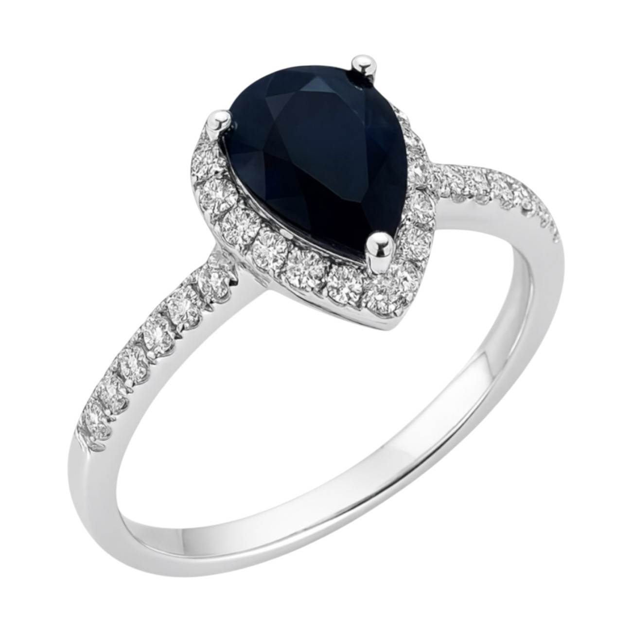 Аристократичний синій сапфір у поєднанні з сяйвом діамантів створює елегантний акцент, який підкреслить витончений стиль власниці.