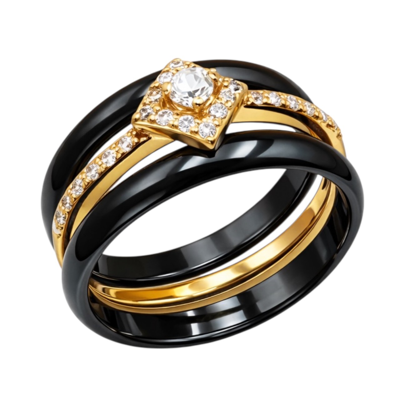 Кераміка відзначається стійкістю до подряпин і зберігає насичений колір, а золото додає прикрасі статусності та теплого блиску. Завдяки універсальному дизайну каблучка гармонійно доповнить як повсякденний образ, так і діловий чи святковий стиль. Розмір 19 забезпечує комфортну посадку.
